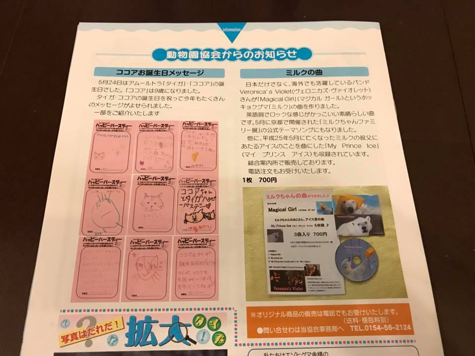 ☆Veronica's VioletのCDが釧路市動物園の「ふれあい」という冊子で紹介されました。(7月17日)