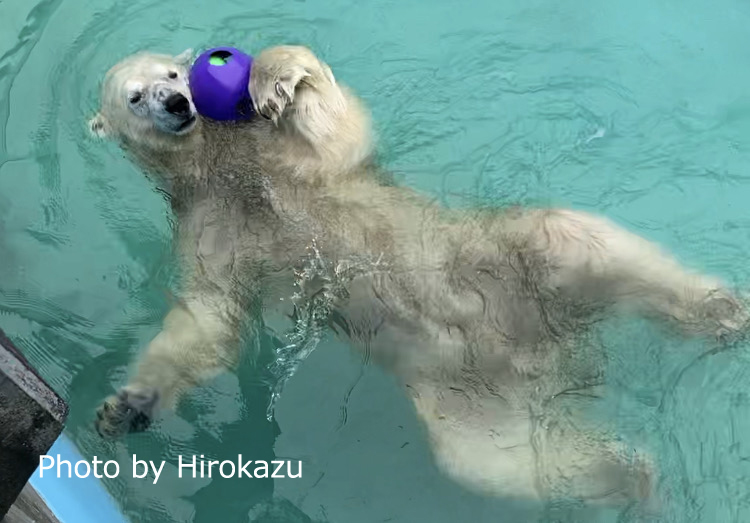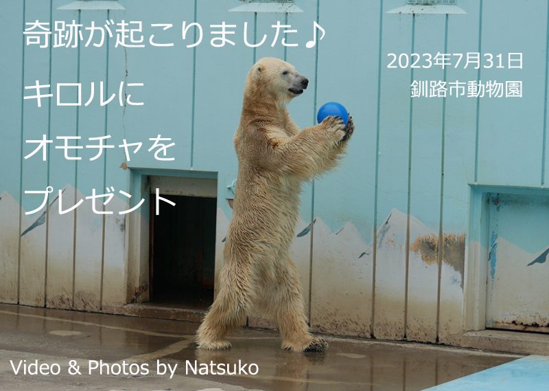 釧路市動物園のホッキョクグマミルクちゃんとキロル君に、1月にトマトt3キロ、7月にイギリスの会社のブーマーボールを贈りました。