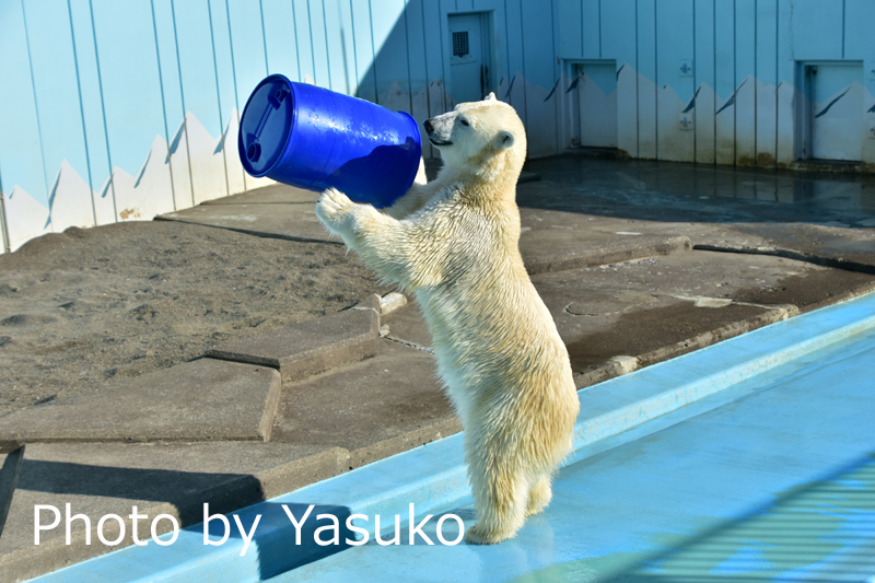 釧路市動物園のホッキョクグマミルクちゃんとキロル君にプラスティックプラスティック製のドラム君を贈りました。