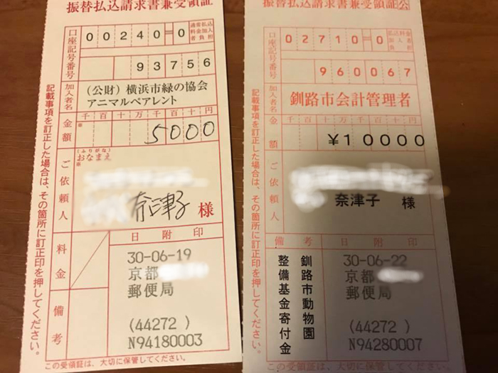 売り上げ金から釧路市動物園様、横浜ズーラシア様へ寄付させていただきました。