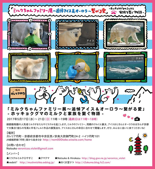 5月17日〜21日に京都で開催されます、ホッキョクグマの展覧会「ミルクちゃんファミリー展」でVeronica's Violetの新曲を発表します。